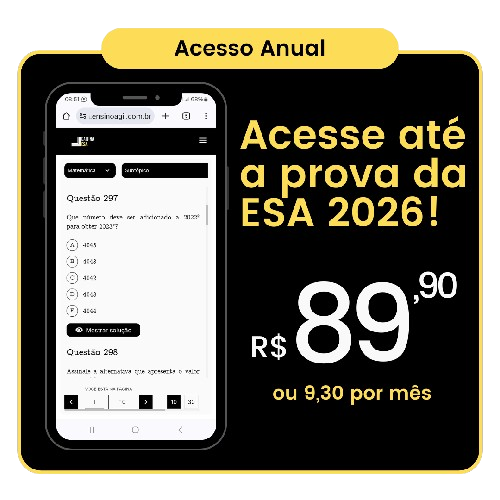 Simulados completos e atualizados para o concurso da ESA. Treine com questões reais, gerencie seu tempo e avalie seu desempenho para conquistar a aprovação!